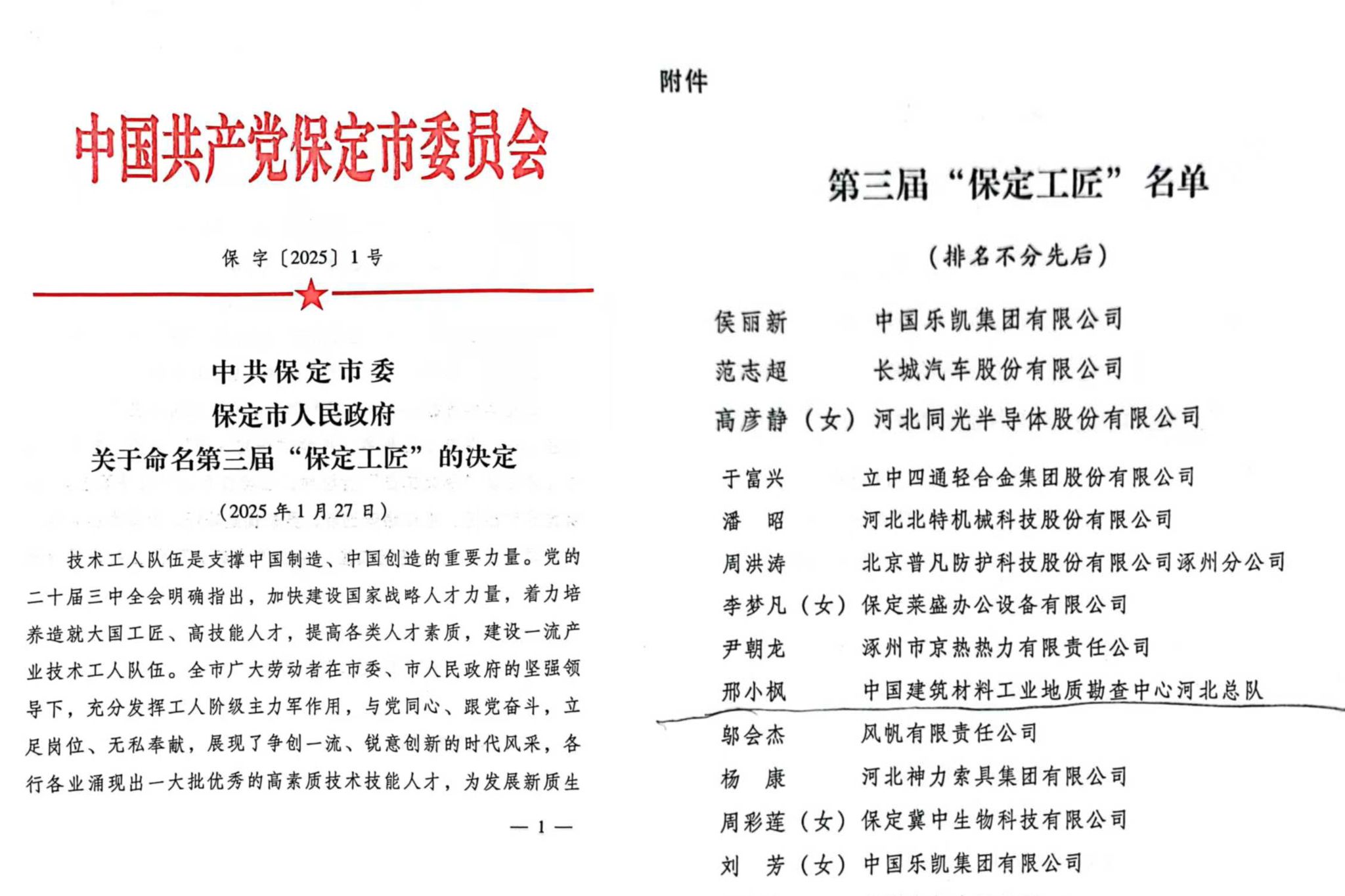 此次“保定工匠”荣誉颁授仪式的成功举办,不仅是对邢小枫同志个人成绩的充分肯定,更是河北总队大力弘扬工匠精神、营造尊重劳动、崇尚技能良好氛围的重要举措。相信在“保定工匠”精神的引领下,河北总队必将涌现出更多技艺精湛、敬业奉献的优秀人才,为推动地质勘查行业高质量发展注入新的活力!