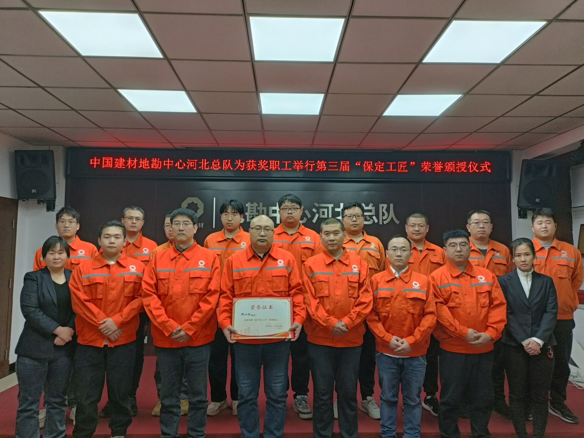 3月13日,河北总队为荣获“保定工匠”荣誉职工邢小枫同志举行颁授仪式。河北总队部分领导班子成员、中层干部代表及地勘院全体职工参加仪式。