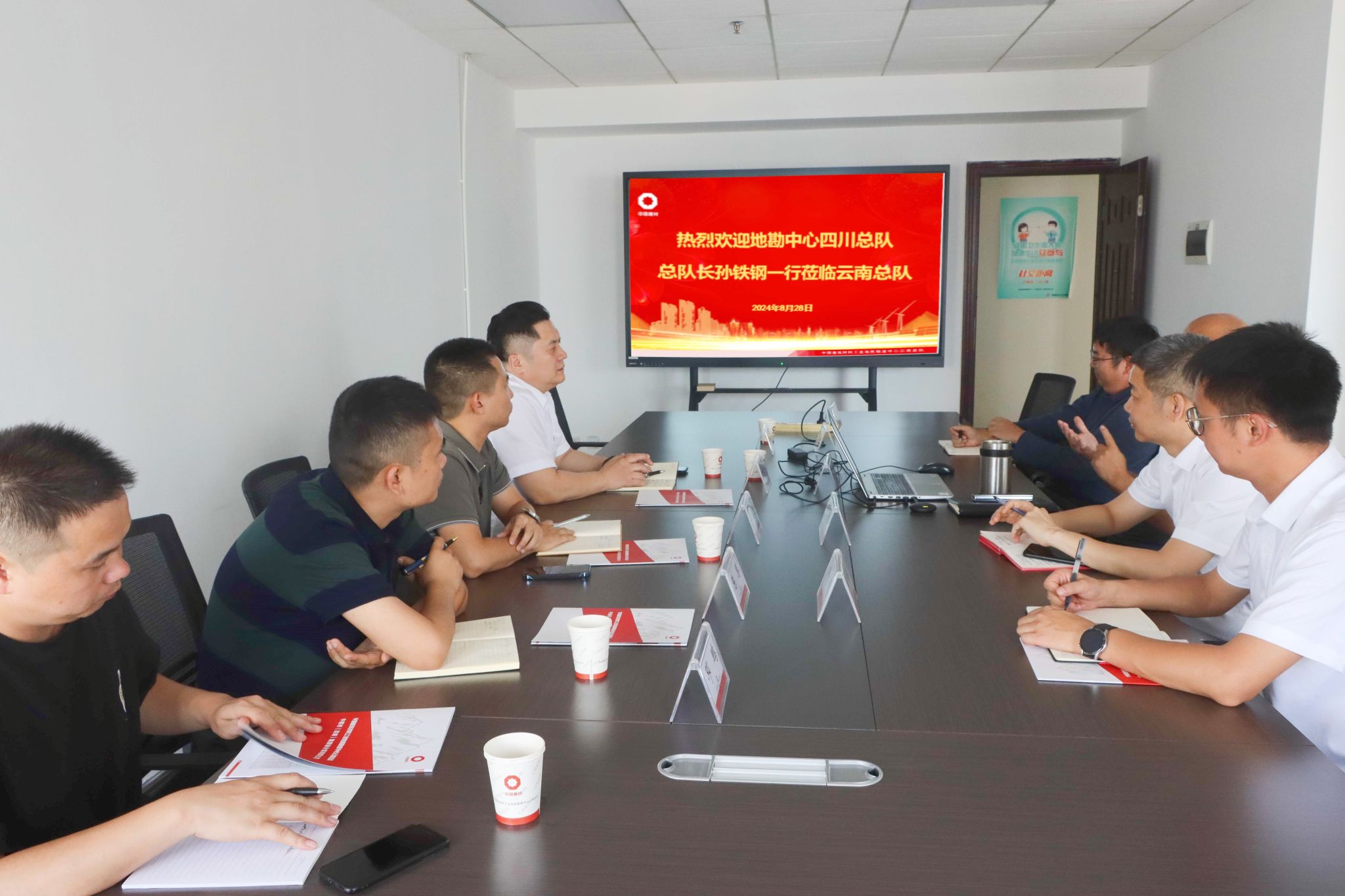 云南总队党委书记、总队长杨文杰代表总队向孙铁钢一行到访表示欢迎,并对云南总队基本情况、业务布局、发展优势等情况作了详细介绍。他表示,云南总队在传统地勘服务主业、矿业开发(矿权经营)等领域拥有深厚基础,两家总队产业链互补性强。未来,双方可以建立常态化交流机制,在矿业开发、项目评审、合同管理、安全生产等领域开展全面合作。
